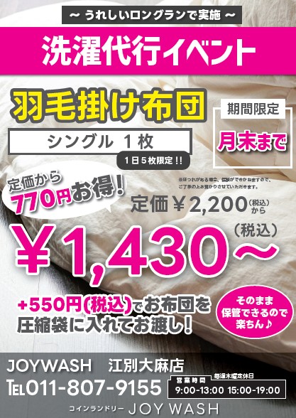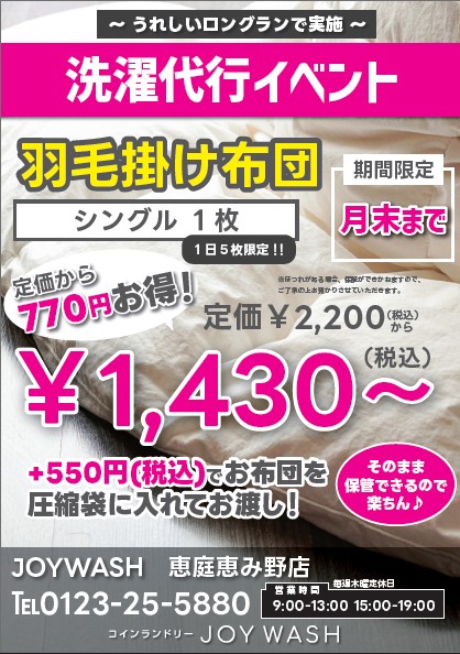 🌟洗濯代行にてお得なイベントのお知らせ🌟